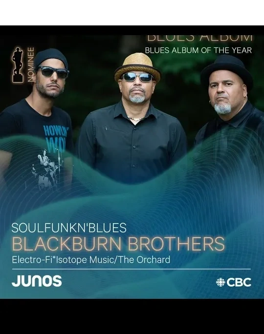 The Blackburn Brother’s latest album SoulFunkn'BLUES (September 2023) has garnered international acclaim, with reviews and features in several prominent music publications. Additionally, the album has won the American 2024 Blues Blast Music Award for Soul Blues Album of the Year and a nomination for Blues Band of the Year, received three American 2024 Blues Music Awards nominations for Album of The Year, Soul Blues Album of The Year, and Song of The Year (a new precedent from a Canadian band), and a 2024 JUNO Awards nomination for Blues Album of The Year. Considered the highest honours on the Canadian Blues scene, Blackburn Brothers collectively earned a record-setting nine nominations in the 2024 Maple Blues Awards including: Entertainer of the Year and Electric Act of the Year.